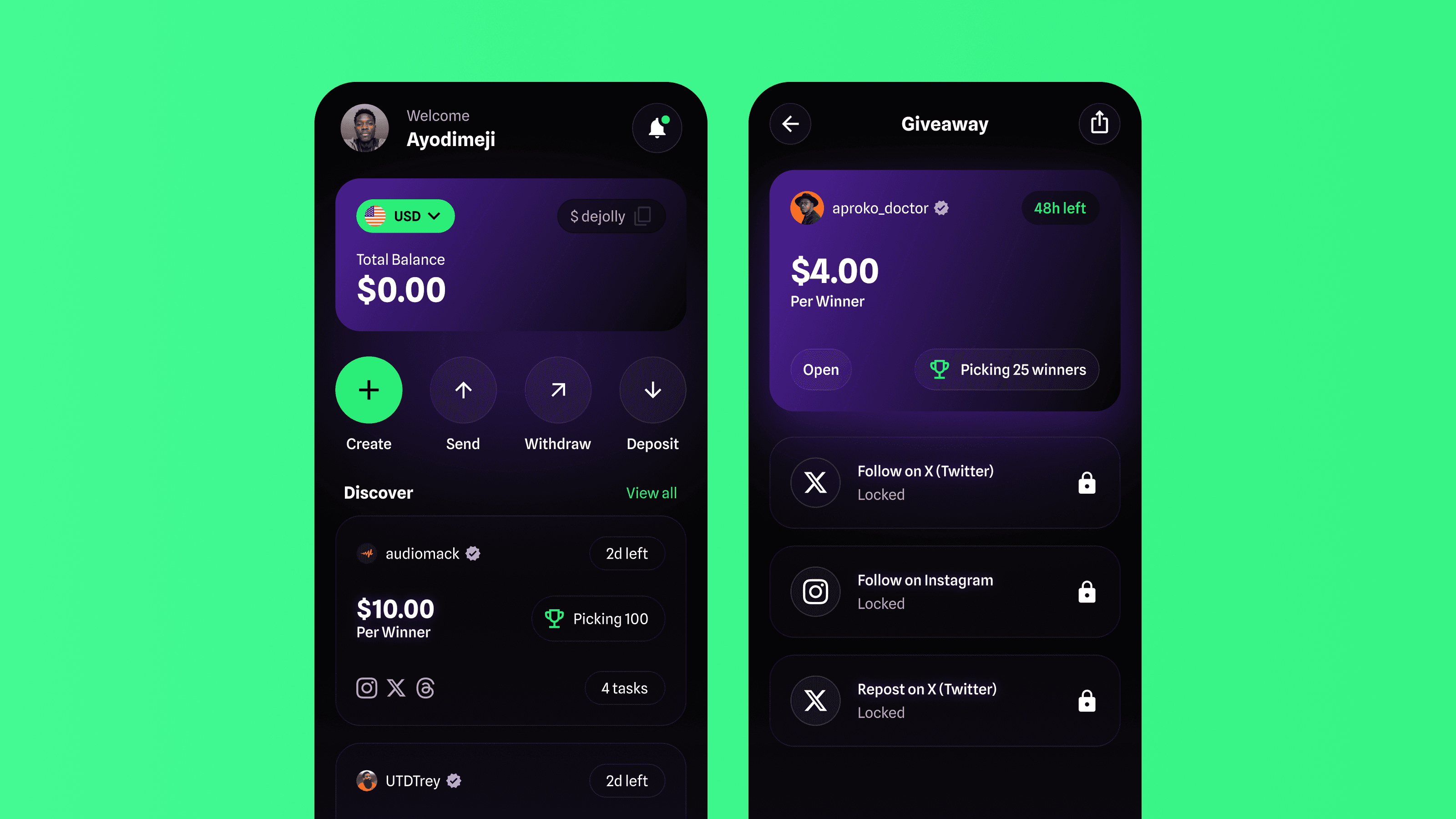 A borderless social payment app that rewards real social media engagement with money, combining giveaways, peer-to-peer payments, and a global wallet into one seamless experience. Powered by Spotflow.